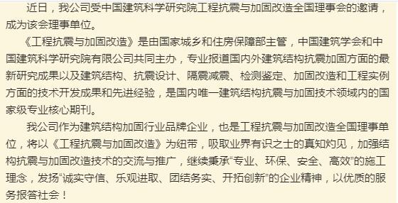 热烈庆祝我公司成为中国建筑科学研究院工程抗震与加固改造全国理事单位