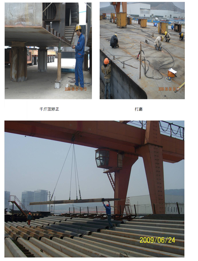 ★成立时间 我公司凭据实力与业绩于2002年04月申办钢结构三级施工资质,并于2008年12月晋升为钢结构二级施工资质。 ★机构设置 我公司拥有钢结构工程专业承包二级等施工资质,并通过了ISO9001、ISO14001和ISO18000管理体系认证。 ★承包范围 1.二级钢结构承包资质企业可承担单项合同额不超过企业注册资本金5倍且跨度33m及以下、总重量1200t及以下、单体建筑面积24000m2及以下的钢结构工程(包括轻型钢结构工程)和边长80m及以下、总重量350t及以下、建筑面积6000m2及以下的网架工程的制作与安装。 2.总包单位钢结构承包资质条件下的各类劳务分包。 ★施工工艺 钢结构工程焊接工艺流程 焊接场地—— 焊接部位清理 ——电焊机与焊条待焊件检查——定位焊 焊接工艺参数调整——平焊——角焊焊接——立焊——仰焊——焊接外观检验—— 清理、编号 钢结构工程吊运工艺流程 构件检查——设备、工具检查——吊装准备——埋件检查—— 连接螺栓检查——施工放线——钢柱吊运——钢柱安装——吊运——安装 劲性钢混凝土施工型钢柱安装 工艺流程:塔吊将钢柱部件吊装至安装附近位置→门形桥架吊装就位→检查垂直度、轴线偏差、标高→连接板固定→复核调整→点焊固定→焊接翼板、腹板→焊缝外观检查→超声波探伤。 钢梁的施工工艺 起吊→就位→临时固定→调节水平、竖向调节丝杆→校正轴线垂直度、标高→焊接固定点→焊接腹板侧边→焊接翼缘抗剪连接件→焊缝处理→焊接外观检验→超声波探伤检验→合格后交付土建作业。 典型钢结构施工图片展示 1、海湾大沽河航道 |